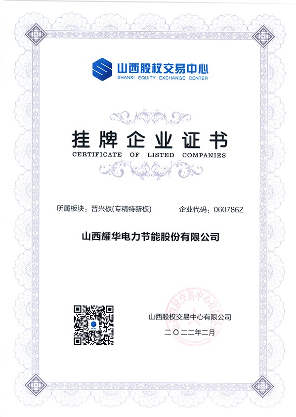 山西耀華電力節(jié)能股份有限公司是國內(nèi)第一家提出谷期電集中儲(chǔ)能蓄能的高新技術(shù)企業(yè),其主營業(yè)務(wù):電力市場購售電交易運(yùn)營、電力設(shè)施安裝檢測運(yùn)維、 低谷電采暖設(shè)備的研發(fā)、生產(chǎn)、安裝、銷售及運(yùn)行服務(wù)于一體。公司成立于1996年,落座于山西省太原市,現(xiàn)有股權(quán)代碼在晉興板上市的專精特新企業(yè),中國建設(shè)科技自主創(chuàng)新優(yōu)勢企業(yè),山西省節(jié)能協(xié)會(huì)理事單位,擁有自主知識產(chǎn)權(quán),獲得國家多項(xiàng)專利,參編了電采暖國家標(biāo)準(zhǔn)(JC/T60008-2021)和主編了山西省地方標(biāo)準(zhǔn)(DBJ04/T291-2012)。擁有國家發(fā)明專利11項(xiàng),軟件著作權(quán)6項(xiàng)。其中“大數(shù)據(jù)遠(yuǎn)程集中監(jiān)控運(yùn)維服務(wù)平臺(tái)”早在2019年就在河北、天津、山西等多個(gè)煤改電地區(qū)投入試用,節(jié)能效果非常顯著,運(yùn)維方便快捷,用戶滿意。